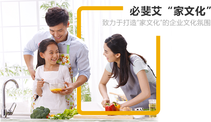 必斐艾坚持"以爱为本,用心经营 "的管理理念,在企业中建立真诚互信的人际关系,将 "小家"凝聚成"大家"的团队精神,从而创造充满爱、欢乐和幸福的家庭式工作氛围,让员工在工作中感受"家"的 温馨和归属。